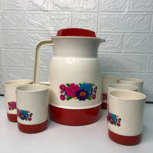 7 Pcs Fancy Plastic Water Jug Set Hot & Cold Water Jug & 6 Glasses