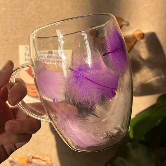 Feather filled double-layer glass cup