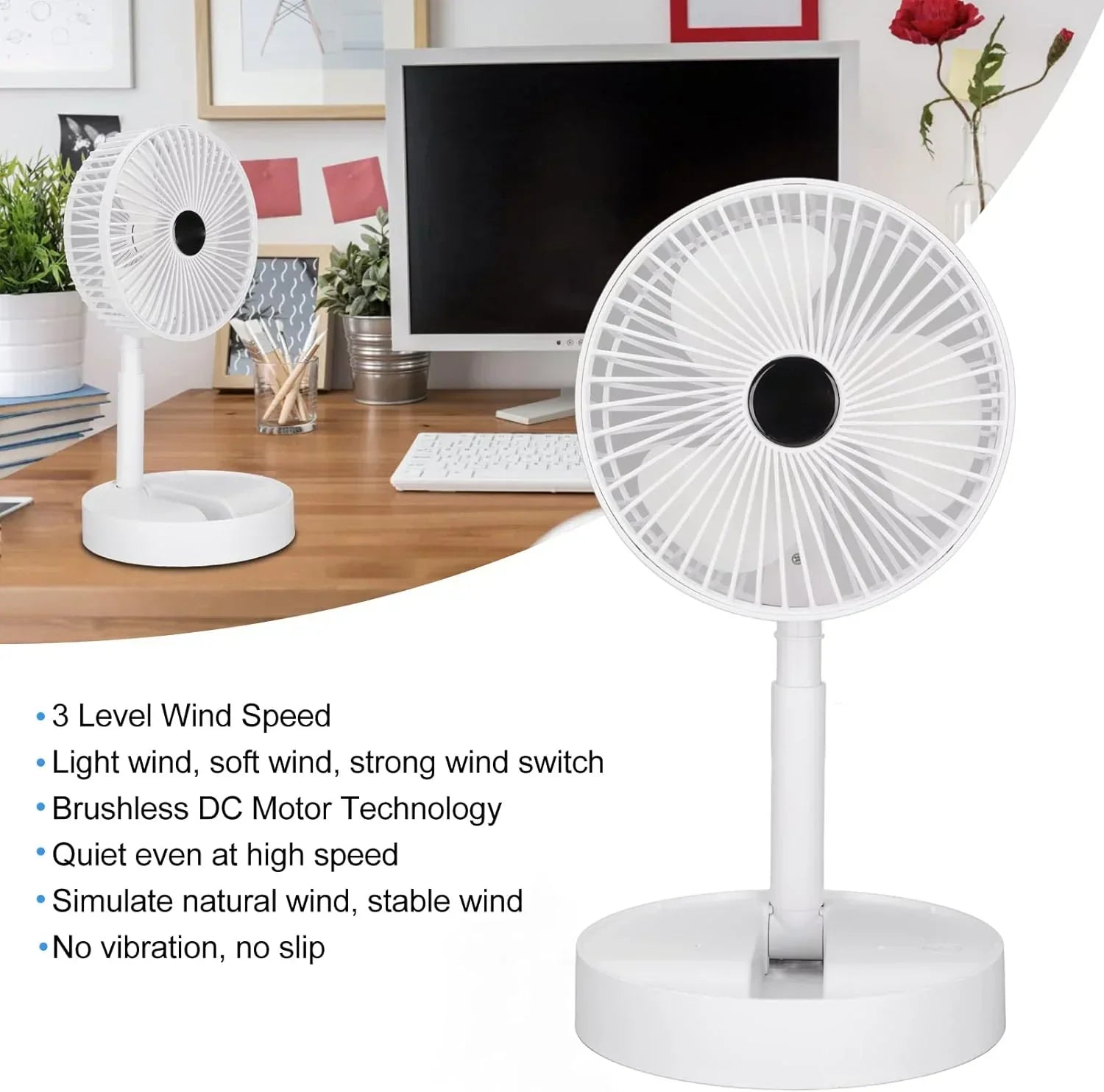 - 【Brushless Motor】Equipped with a variable speed DC brushless motor, the speed is switched periodically, the speed is stable and natural, and the real natural soft wind is copied, ensuring low‑noise operation, stable operation.