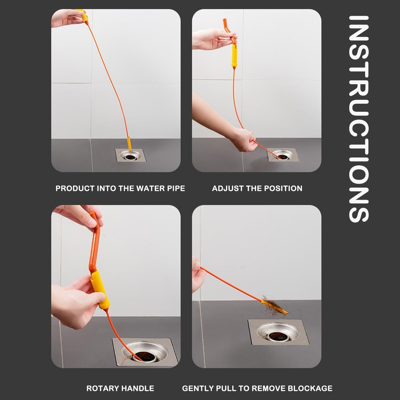 - handle and sleeve combination winds up hair clogs for quick removal.