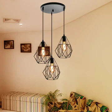 Trio of Lights: As the name suggests, the fixture incorporates three separate light sources or bulbs within the cage canopy. This trio of lights creates a balanced and well-distributed illumination, making it suitable for various settings, including dining tables, kitchen islands, or living spaces.